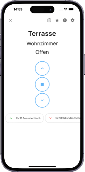 Control the shutters, blinds, external venetian blinds and awnings smartly via the app on the smartphone or tablet.